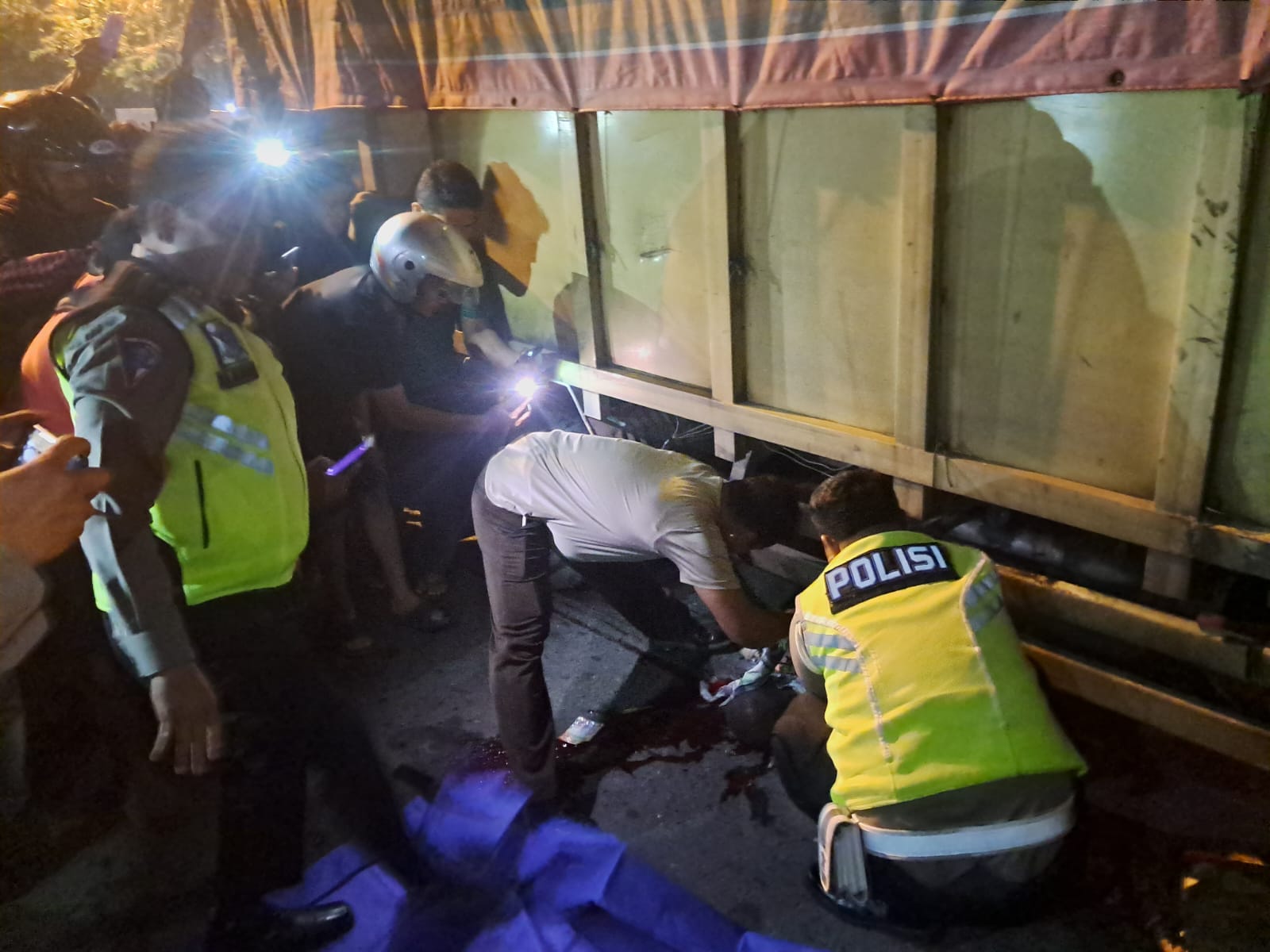 "Korban nya tewas dibawah kolong mobil dengan kondisi kepala remuk usai terlindas mobil Cold Diesel Bermuatan Pakan ternak, korban ini keseharian nya bekerja sebagai "Pak Ogah" atau orang yang bekerja menyeberangkan pengguna jalan. Ujar warga dilokasi kejadian.